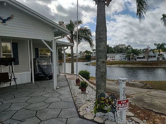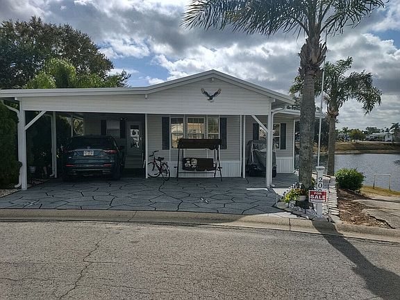 Own your own land!! This lovely 2 bedroom (or den or spare room), 2 1/2 bath home, with spacious living room & large separate dining room, situated right on the lake is turn key ready to move in. All you need are your clothes! Attached garage allows for golf cart to be driven in. Golf cart stays with home also. Garage contains work bench (with tools), extra shelving, the 1/2 bath for easy cleaning after working at your bench & washer/dryer. Rubber roof is 2 years old & comes with a lifetime guarantee & is transferable with sale. Termite, bug & rodent protected by Orkin. Newer A/C. New refrigerator. Newer orthopedic bed. Not only converts to your position but also raises for easy bed making & lowers again. Everything stays except some tools & some personal items. Too many extras to list! A rare & must see home!