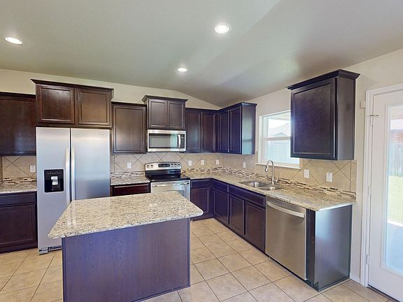 Welcome to this stunning 3-bedroom, 2-bathroom home located in the vibrant city of Killeen, TX. This property boasts a spacious 2-car garage, perfect for your vehicles or additional storage. Step inside to find a modern kitchen equipped with stainless steel appliances, including a side-by-side refrigerator, and beautiful granite countertops. The home also features a convenient utility room, adding to its practicality. The interior is further enhanced with faux wood mini-blinds, adding a touch of elegance to the space. Outside, you'll find a covered front porch, ideal for greeting your guests, and a covered back patio, perfect for outdoor relaxation or entertaining. This home combines style, comfort, and convenience, making it a perfect choice for your next move.