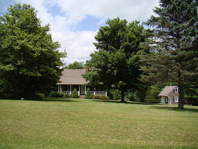 Charming country home in view of the Blue Ridge Parkway. Surrounded by trees with 2.58 acres. Nice big yard. Detached garage with large room upstairs for storage. Home has a wood burning fireplace in the great room. Laundry on the main level. Partially furnished. Long covered front porch, Large private open deck out back for entertaining. Two natural springs on property. Located only 5 miles to Hwy. 52.