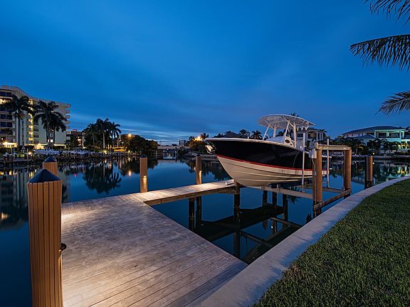 Sea Spray Cottage. Steps to the beach. Seconds to the Gulf. A truly breathtaking waterfront retreat has arrived in the Moorings. Boasting 164' of waterfrontage on Compass Cove with ideal sunset western exposure views, only the finest artisans have been assembled to deliver this enchanting and uncompromising Old Florida Cottage style home in a poetic aqua setting. Designed to showcase the sensational sight lines from virtually every vantage point, the open floor plan and soaring ceilings will provide coveted relaxation and true vacation living. Masterfully finished by Robb & Stucky to complement the cool lifestyle, take in the morning sky and sea from your 1st floor master suite, which is complemented with separate his and her oversized closets. The outdoor living area is where true bliss is realized with an oversized pool and spa that seem to flow directly into the cove beyond. Boater's will love the brand new sea wall, dock and boat lift made for the casual or serious sportsman. Also includes exclusive access and walking distance to the Moorings private beach park. One of the finest luxury waterfront estates ever to be built in the Moorings is now here...