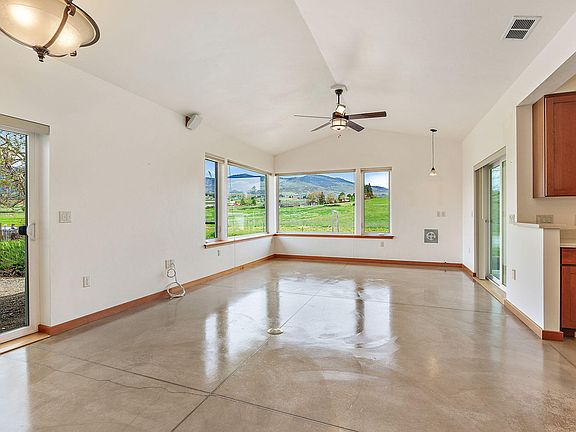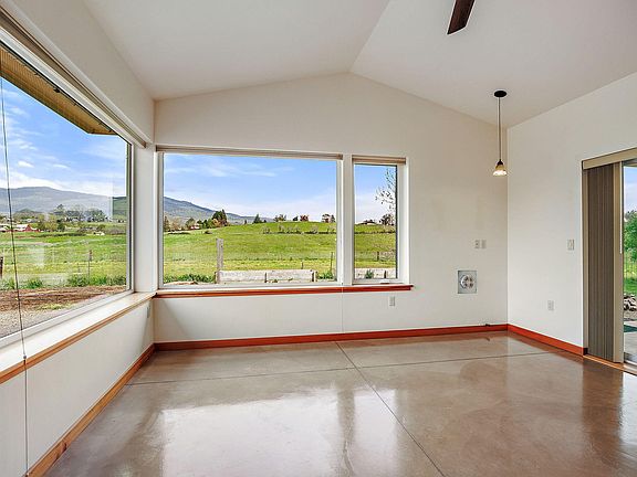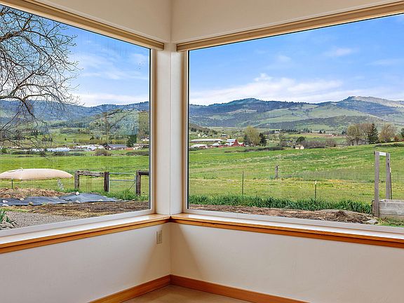This thoughtfully designed and built home is a delight - energy efficient and environmentally responsible. Sparkling clean, with lots of light, situated minutes to Ashland under big sky, with fantastic sunrises and sunsets and gorgeous pastoral and mountain views. It features a ground source heat pump system, radiant heat floors, beautiful cherry wood cabinetry, clear grain fir woodwork, mostly triple paned windows, soaking tub, metal roof. The 17+ acres are ready for farming or grazing, nice vegetable garden, TID irrigation rights, two barns, one with workshop area and office, one with two horse stalls and hay storage, separate tack room, lots of water storage, super-efficient irrigation/sprinkler system for the fields, solar panels. The house is surrounded by lilacs, and fruit trees - cherry, peach, walnut. Little bit of heaven on earth.