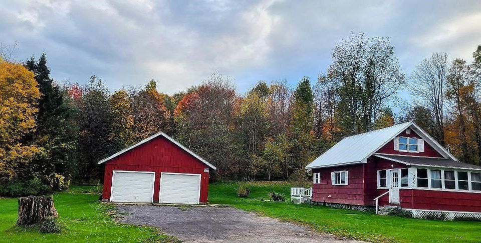 Cozy cape cod set perfectly in the country. Offering you almost a half acre of land with a 2-3 bedroom home and detached garage. Seller is open to how you would like to buy it...FINANCE WITH THE SELLER WITH 15% DOWN or buy out right. Seller has done a ton of renovations to this cute home with providing a more open concept to the living room, expanding the bathroom, updating electrical (not finished) and replacement of the stairway to the second floor. Floor plan has a closed in sun porch with knotty pine, living room with open concept, beautiful kitchen that adjoins to dining area, full bathroom on first floor, and 2 bedrooms on the second floor. This house is just waiting for you to make it your own. Home is being sold as is.