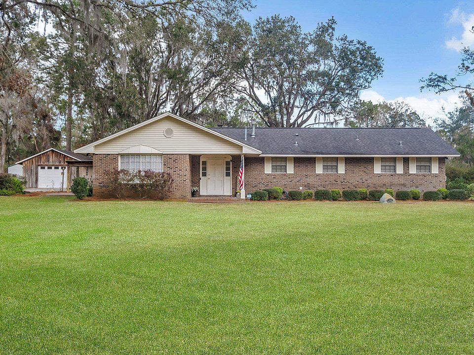 Welcome to this exquisite 4-bedroom brick home nestled in a highly sought-after subdivision. This charming residence boasts a well-thought-out floor plan featuring 2 spacious living rooms, ideal for both relaxation and entertainment. The formal dining room provides an elegant setting for gatherings and special occasions. The kitchen is a true gem, showcasing real wood cabinetry and solid surface counters, creating a perfect blend of style and functionality. Hardwood and tile flooring throughout add a touch of sophistication to the home. The generously sized master bedroom is a retreat in itself, offering a full en-suite bathroom for ultimate comfort and privacy. The oversized laundry room adds convenience to daily chores. Natural light floods the interior, creating a warm and inviting atmosphere. A gas fireplace with a brick surround enhances the cozy ambiance, complemented by some recessed lighting for a modern touch. Step outside to discover the outdoor entertainment area, complete with a covered space, brick pavers, a fire pit, and a charming goldfish pond. Whether you're hosting gatherings or simply enjoying a quiet evening, this outdoor haven provides the perfect setting. Additional features include a detached 1-car garage, covered parking with a paved circle drive, and the convenience of city utilities. This home is not just a property; it's a haven where comfort and style converge. Don't miss the opportunity to make this dream residence your own.
