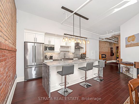**Stinson School Lofts** Originally built in 1894, transformed to 66 one-of-a-kind lofts in 2014. Unit 107 is the building standout, being the largest in the whole complex. At 2237 sqft. this 2 bedroom plus den (plus a bonus room) and 3 washrooms features a reno'd kitchen with a massive waterfall island, quartz counter-tops, stainless steel appliances, and engineered hardwood throughout. Both bedrooms have their own private en-suite bathrooms, huge closets, and additional storage. Incredibly well laid out bright corner unit without an ounce of wasted space, plus all the century old markings of it past on full display showcasing its 10 foot ceilings, two toned original sand blasted brick, and exposed ducts. Downtown Hamilton is mere minutes away, yet perfectly tucked away in a quiet area with views of the escarpment. Quite possibly the best value in the loft market right now. Try to compare! *Parking included*