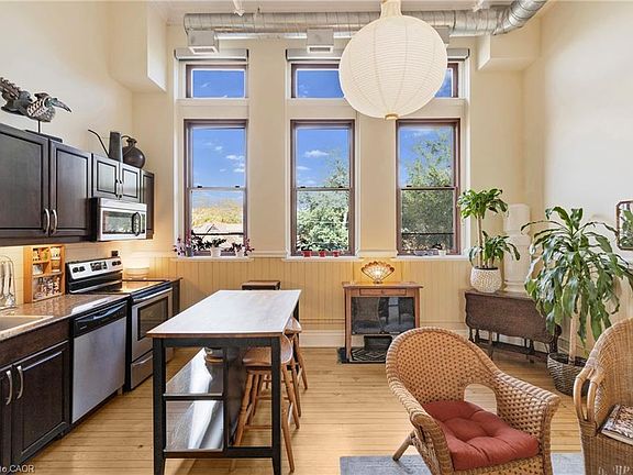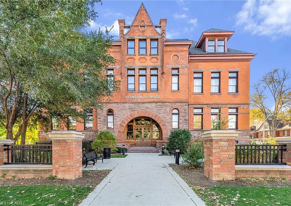 Welcome to the historic Stinson School Lofts, where heritage charm meets modern living. This bright and airy studio loft features soaring 13 foot ceilings, original hardwood floors, and oversized windows that flood the space with natural light. Designed for convenience and character, this open concept suite offers in unit laundry, all major appliances, and an assigned parking spot in the rear lot. Perfect for students, professionals, or down-sizers, this unique loft sits steps from the Bruce Trail, GO Station, and public transit with direct routes to McMaster University, Ancaster Meadowlands and Stoney Creek. Situated between three major hospitals and close to downtown, it’s an ideal spot for commuters or anyone seeking a walkable, connected lifestyle. Experience the charm of an 1800s schoolhouse reimagined into modern, boutique style living in one of Hamilton’s most iconic condo buildings.