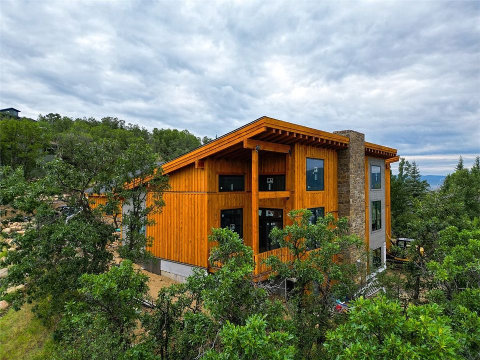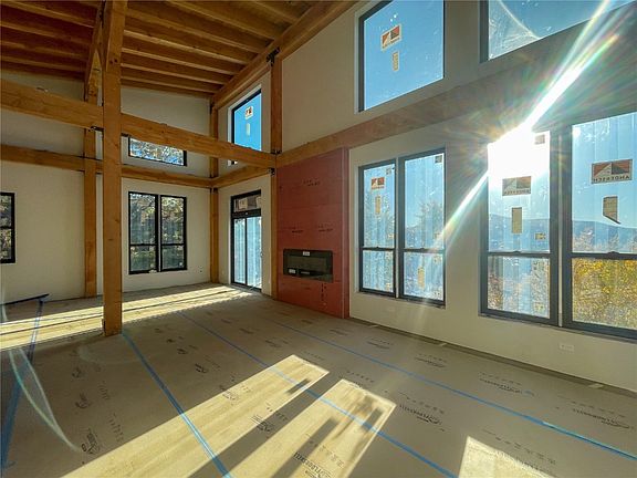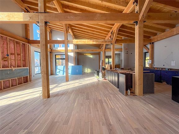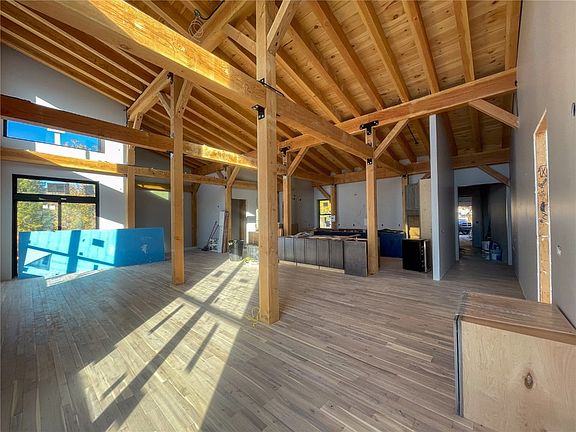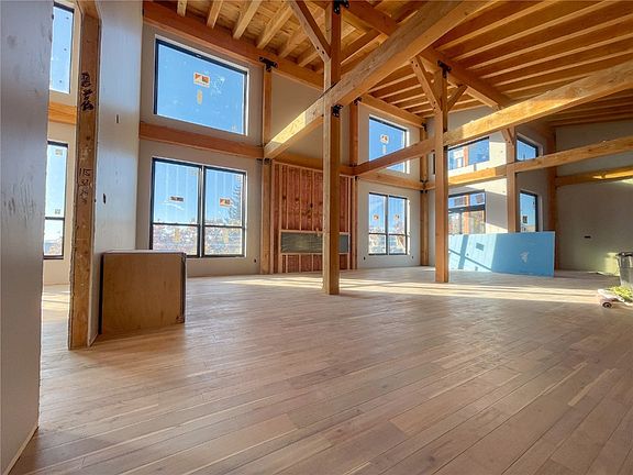 Built with timeless post and beam construction, the home features a spacious open-concept main level where the chef’s kitchen, outfitted with high-end appliances, flows seamlessly into the dining area and expansive great room. Vaulted ceilings and warm wood accents create an inviting atmosphere, while large windows frame stunning views of Emerald Mountain.