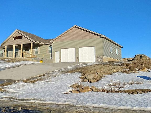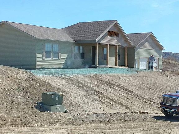 Perched on top of the lot with views of the Makoshika hills is this beautiful 3 bedroom 2 bath home with a huge oversized double stall garage. This home is one-level living with an open concept. The 1475 sq' home was constructed in 2014. The home consists of a kitchen, dining room, living room, master suite, two spare bedrooms, a bathroom, and a laundry room. The home has many features such as a center island with a breakfast bar in the kitchen, sliding glass doors off the dining area to the backyard, a built-in desk, and a huge laundry room/mud room off the garage. The master suite features a tray ceiling in the bedroom with a walk-in closet, double sink, shower, and a soaking tub. The home sits on a 16,007 sq' lot with a large front covered porch and views of Makokoshika from the backyard.