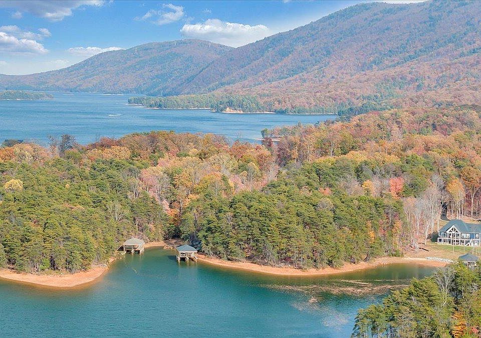 Experience waterfront luxury at its finest in this new Smith Mountain Lake home, perfectly positioned on a flat lot with crystal-clear water and panoramic views. Designed in timeless craftsman style, it offers 9 bedrooms and 6 baths supported by an 8-bedroom septic system. The open-concept interior features vaulted shiplap ceilings, a gourmet kitchen with farmhouse sink and custom hood, and seamless flow to a covered porch ideal for dining and entertaining. Enjoy full tiled showers, a spa-like primary bath, and expansive outdoor living with covered porches, stone fireplace, TV, and cedar finishes. A heated saltwater pool with Omni Smart controls, an 8-person hot tub, and a poolside recreation room with wet bar enhance the resort-style experience. The large covered dock includes an upper deck and enclosed bar area for lakeside gatherings. With smart home features and projected rental income over $350,000 annually, this exceptional property blends elegance and unparalleled living.