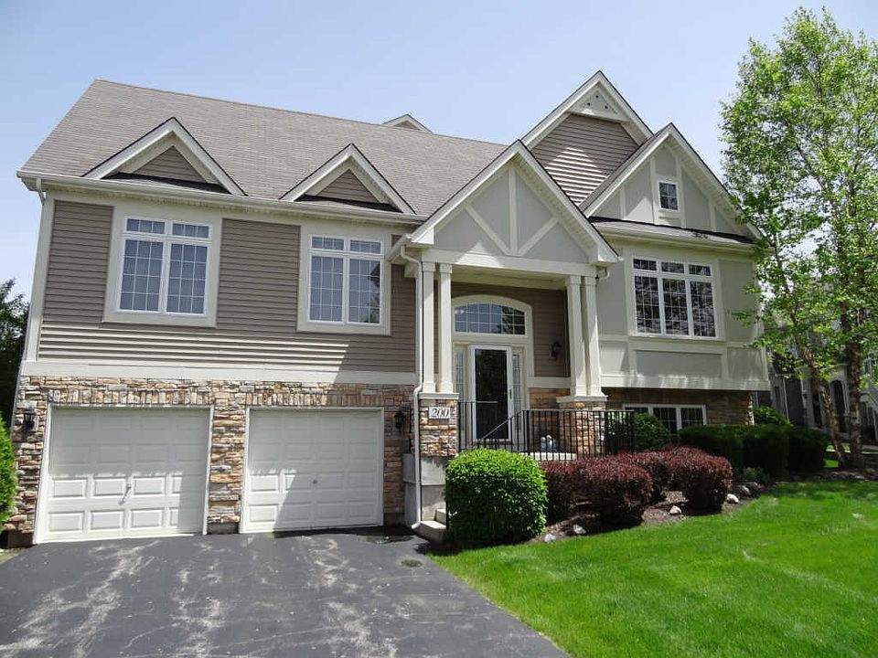 RARE, front facing, end unit with private off street driveway and oversized 2 car garage! Easily a 3 bed 3 full bath home. Open concept dining and living space with fabulous vaulted ceilings great for entertaining! Freshly painted walls, hardwood floors and windows galore! Kitchen boasts Stainless Steel appliances and granite countertops. Huge Master bedroom with walk-in closet and master bath with soaker tub and separate walk in shower. Nothing to do but move in and enjoy! Garage storage cabinets can stay - loads of storage space! Located in Easton Park, right off North Ave, Great for commuting and lots of shopping nearby. Agent related to seller.