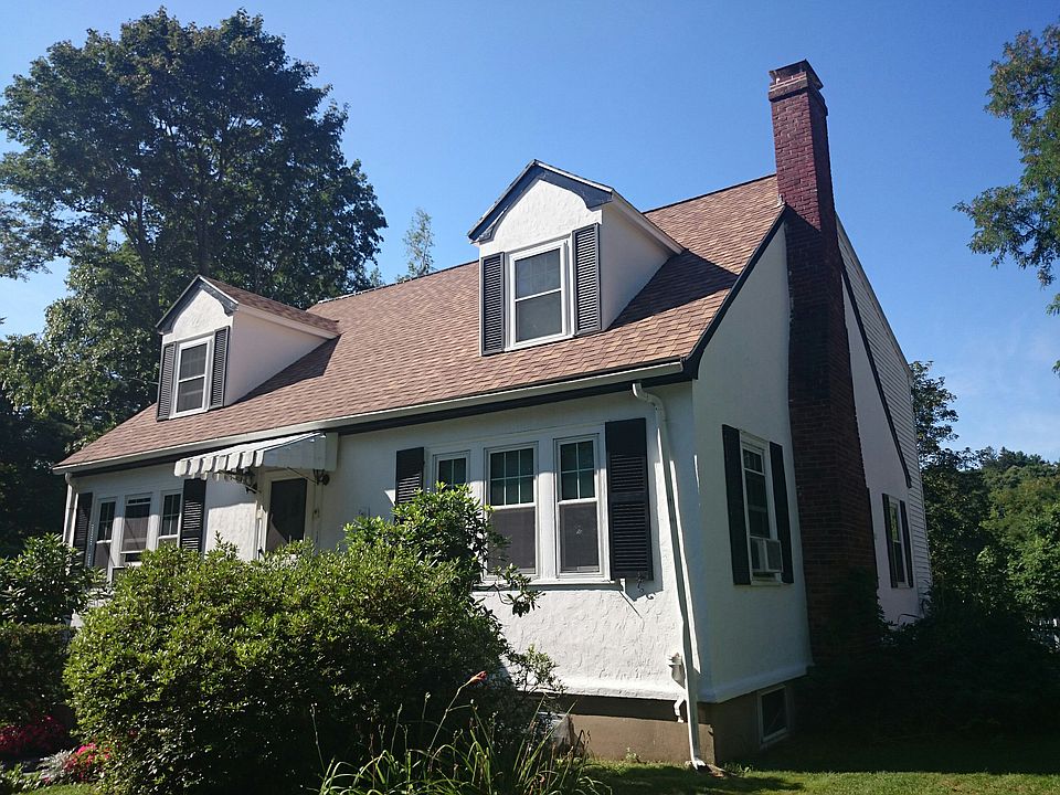 A FAMILY HOME for two generations. Well maintained with many desirable upgrades such as solar panels, alarm system, newer gas heat and hot water. Large, open kitchen and dining area with beautiful, natural wood grain cabinetry and lots of counter space. Full bath and den with closets on the first floor, plus four bedrooms, all with extra closet space, on the second floor. Loads of storage room plus a half bath in the basement. The large lot includes a fenced back yard and a beautiful wooded area. Single car garage large enough to also accommodate a tent trailer.