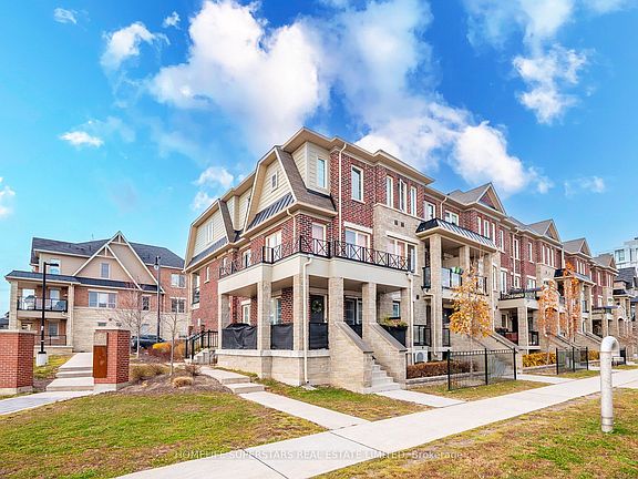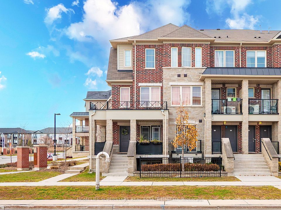 Welcome to this beautiful three bedroom, three bathroom END Unit townhome featuring private front entrance with a large wrap around balcony. As an end unit, it benefits from additional windows that bring in abundant natural light throughout the home. This modern property offers high-quality finishes, 9-foot ceilings, and an open-concept layout that creates an inviting, open atmosphere. The kitchen includes stainless steel appliances with a stylish backsplash. Enjoy direct garage access, a rare convenience within this complex and area. Furthermore, the home is equipped with Smart Home Accessories for added convenience and security, including cameras, a smart garage door opener, and a smart thermostat. Home is freshly painted with wainscoting recently completed in all bedrooms. Ideally situated close to Mount Pleasant Go, Highway 407, Schools, Transit, playground, and everyday amenities. A brand new plaza including Dollarama, Pharmacy, Daycare, Dentist located right across the street and just steps in the other direction to a gas station, restaurants, and shops. Truly a well-maintained home in a fantastic location!