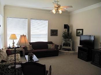 All Stone Exterior home on Private cul-de-sac in an Adult Community and 55 and better. Well built home, one owner, within walking distance to shopping, Walgreen's and much more. This home features a completely tiled roll in Shower at Master Bath and extra wide bath area. Partial Private Fenced Yard, Full Sprinkler System, and Covered Patio. Low maintenance Home in a highly Desirable Community. Very Open and spacious Floor Plan.