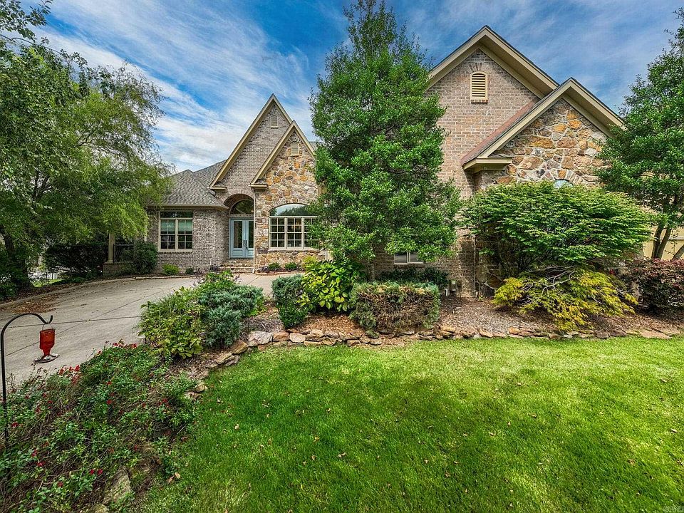 Fabulous home in The ARBORS of Chenal Valley. Gorgeous inside and out. Excellent open floorplan lives like a one level with luxurious primary and two guest bedrooms on the main. Handsome entry flanked by home office with private terrace and banquet formal dining. Spacious family living room that flows into den with fireplace and access to wonderful sun terrace with outdoor fireplace. Gourmet kitchen with top of the line appliances. Upstairs: Large bonus room could be 4th bedroom or media room with wet bar and full bath. Corner Lot with 2 car garage + separate entrance for Golf cart garage! Wonderful location at Chenal's Bear Den golf course and easy ride to beautiful Chenal Valley Country Club. Gated neighborhood. POA provides lawn care.