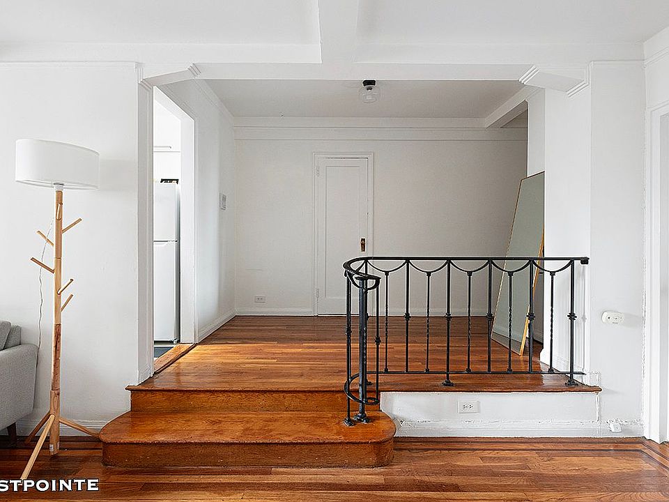 One of the largest and most spacious studio apartments at The Kensington, Apartment 816 beautifully combines classic prewar elegance with modern comforts. This oversized studio features original architectural details, soaring ceilings, and a dramatic sunken living room, creating a grand and inviting space. A separate dressing room with custom storage and built-ins enhances functionality, while the gorgeous solid oak flooring with Mahogany inlay adds timeless sophistication.