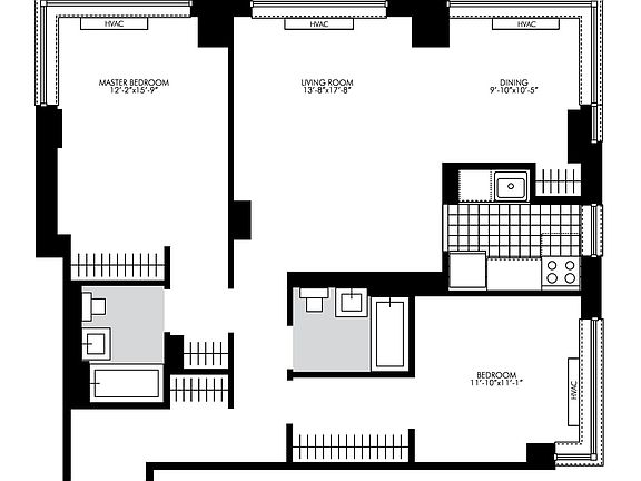 Floor to ceiling windowsFlexible corner dining areaNew strip wood floorsWindowed kitchenLarge livingCity views