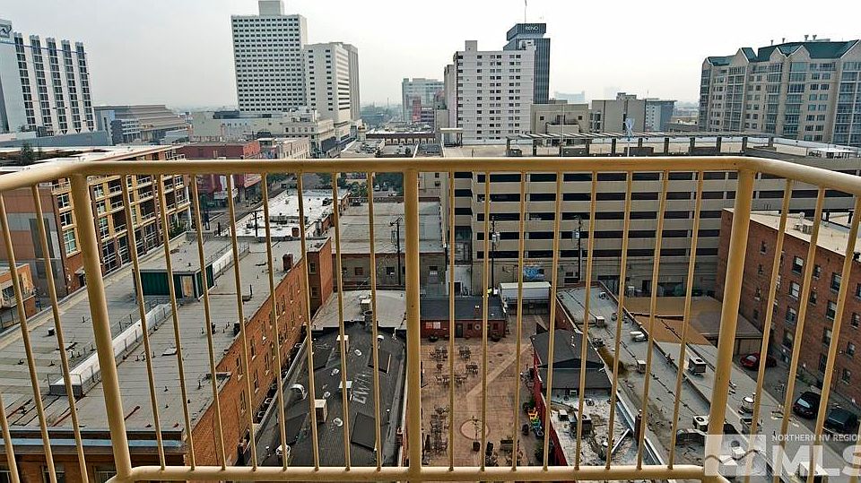Studio Apartment on the 9th floor with Reno Skyline views! This unit has a balcony with enough room for a seating area. Updated flooring, granite kitchen counter top, gas stove and new refrigerator. Spacious bathroom with plenty of storage and a jetted tub. Laundry inside the unit. All appliances stay. This unit comes with 1 garage space for secure, underground parking. Extra storage. Pool, gym, and security doors make this property the premier location for Downtown Reno Living.