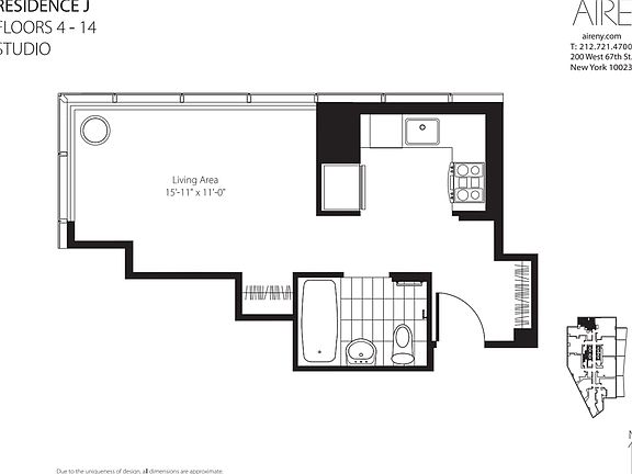 Nestled in the heart of the Upper West Side, AIRE soars over 400 feet in the air with breathtaking views of Central Park, the Hudson River and Manhattans skyline. The 43-story tower offers studio to three-bedroom luxury rentals. Residents enjoy a private drive-court leading to an extensive lobby, along with a state-of-the-art fitness club, a childrens playroom, an elevated park with intricate plantings, strolling paths, a reflecting pool and much more. Sophisticated living awaits at the AIRE.