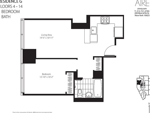 Nestled in the heart of the Upper West Side, AIRE soars over 400 feet in the air with breathtaking views of Central Park, the Hudson River and Manhattans skyline. The 43-story tower offers studio to three-bedroom luxury rentals. Residents enjoy a private drive-court leading to an extensive lobby, along with a state-of-the-art fitness club, a childrens playroom, an elevated park with intricate plantings, strolling paths, a reflecting pool and much more. Sophisticated living awaits at the AIRE.