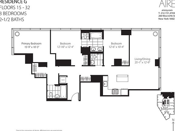 Nestled in the heart of the Upper West Side, AIRE soars over 400 feet in the air with breathtaking views of Central Park, the Hudson River and Manhattans skyline. The 43-story tower offers studio to three-bedroom luxury rentals. Residents enjoy a private drive-court leading to an extensive lobby, along with a state-of-the-art fitness club, a childrens playroom, an elevated park with intricate plantings, strolling paths, a reflecting pool and much more. Sophisticated living awaits at the AIRE.