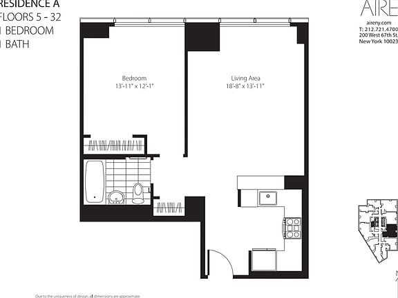 Nestled in the heart of the Upper West Side, AIRE soars over 400 feet in the air with breathtaking views of Central Park, the Hudson River and Manhattans skyline. The 43-story tower offers studio to three-bedroom luxury rentals. Residents enjoy a private drive-court leading to an extensive lobby, along with a state-of-the-art fitness club, a childrens playroom, an elevated park with intricate plantings, strolling paths, a reflecting pool and much more. Sophisticated living awaits at the AIRE.