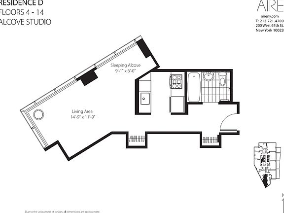 Nestled in the heart of the Upper West Side, AIRE soars over 400 feet in the air with breathtaking views of Central Park, the Hudson River and Manhattans skyline. The 43-story tower offers studio to three-bedroom luxury rentals. Residents enjoy a private drive-court leading to an extensive lobby, along with a state-of-the-art fitness club, a childrens playroom, an elevated park with intricate plantings, strolling paths, a reflecting pool and much more. Sophisticated living awaits at the AIRE.