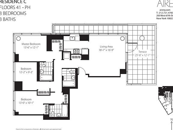 Nestled in the heart of the Upper West Side, AIRE soars over 400 feet in the air with breathtaking views of Central Park, the Hudson River and Manhattans skyline. The 43-story tower offers studio to three-bedroom luxury rentals. Residents enjoy a private drive-court leading to an extensive lobby, along with a state-of-the-art fitness club, a childrens playroom, an elevated park with intricate plantings, strolling paths, a reflecting pool and much more. Sophisticated living awaits at the AIRE.