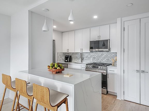 The layout of this apartment provides an expansive living room that can comfortably accommodate living and dining spaces. The beautiful open kitchen has abundant storage and spacious breakfast bar, perfect for entertaining! A spacious bedroom and abundant closet space (4 closets in total) round out this fantastic apartment!