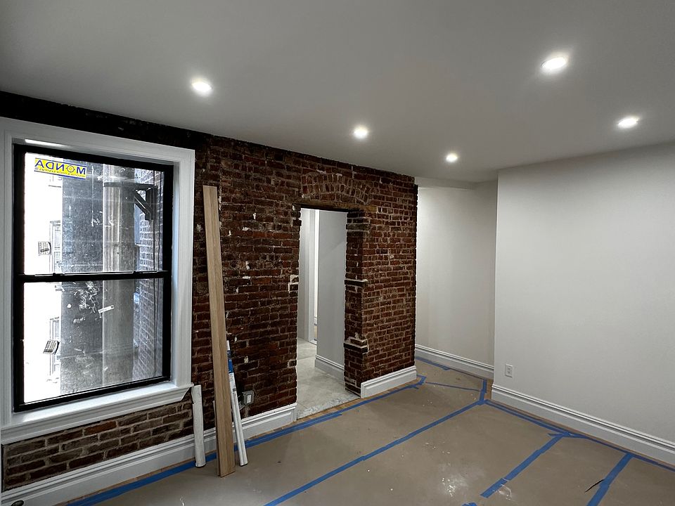 Windows in every roomExposed brick wallsSundrenched apartmentNewly remodeled kitchenWhite tile backsplashWhite cabinetryCharming prewar building