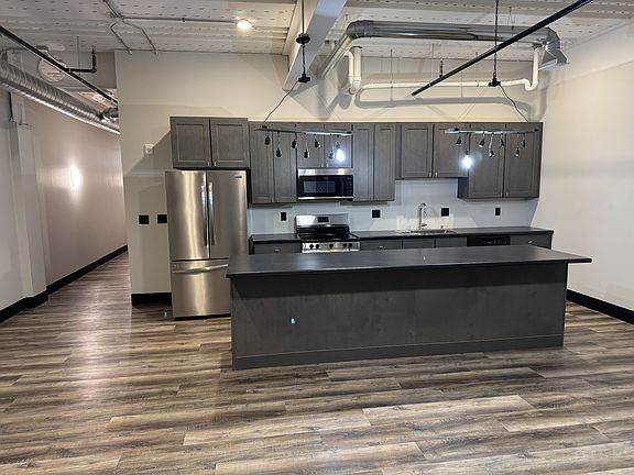 Experience modern luxury in the heart of downtown Appleton, housed within a stunningly redeveloped mid-century bank building. This spacious 3-bedroom, 2-bath unit offers an expansive open layout with all-new appliances, including an in-unit washer and dryer, with utilities included. The interior showcases exposed concrete beams and soaring ceilings, celebrating the building's iconic architecture.