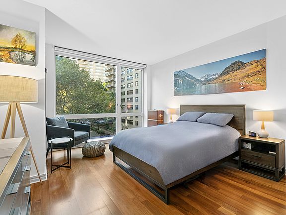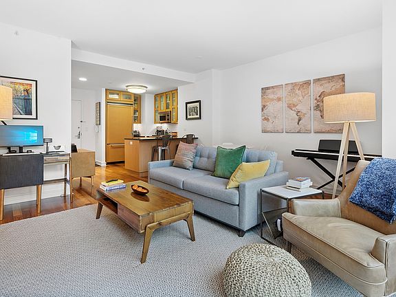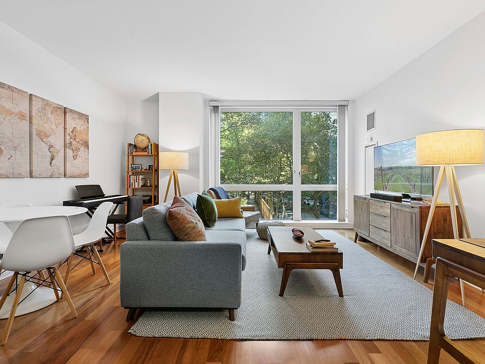 This excellent 839-square-foot one-bedroom apartment offers space, light, and comfort throughout.