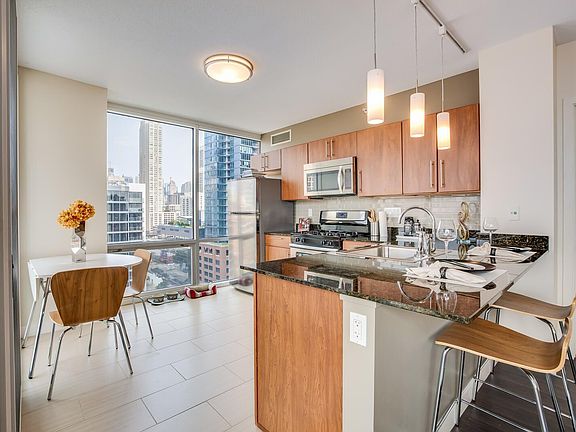 Spacious and modern River North apartment with high-end fixtures and state of the art amenities! Loads of natural light shine through the floor to ceiling windows in this beautiful unit. Conveniently located just steps from the city's best dining and nightlife and a short walk to the Chicago Brown Line. Reference #115 Apartment Amenities Granite Countertops Stainless Steel Appliances Dishwasher & Microwave Designer Kitchen Lighting Water Efficient Grohe Faucets Designer Porcelain Tile in Kitchen/Bathroom Private Balcony (Select Units) Hardwood Flooring Washer/Dryer in-unit Large Walk-in Closet Central Heat/AC Floor-to-Ceiling Energy Efficient Windows Pet Friendly Community Amenities 24-hour Doorman & Concierge Services Fitness Center Beautifully Landscaped Terrace w/ Fireplace, Gas Grills, Spa Outdoor Pool Resident Clubroom w/ Fireplace, TV, & Bar Conference Room w/ SmartTV Business Center Complimentary Coffee Bar Dog Run Garage Parking On-site Maintenance/Management Door Service w/ Controlled Access System Apartment Ratings 2018 Top Rated Community My service is 100% free! Photos are examples meant to reflect finishes. Actual unit may vary based on floor plan and availability. Availability and pricing is real-time, can change daily, and varies by lease term. Equal housing opportunity. Sajed Aziz Broker, Michael Scavo Group - Compass *I work with the largest database of apartment and condo rentals in the city; call me today for help with your search!*