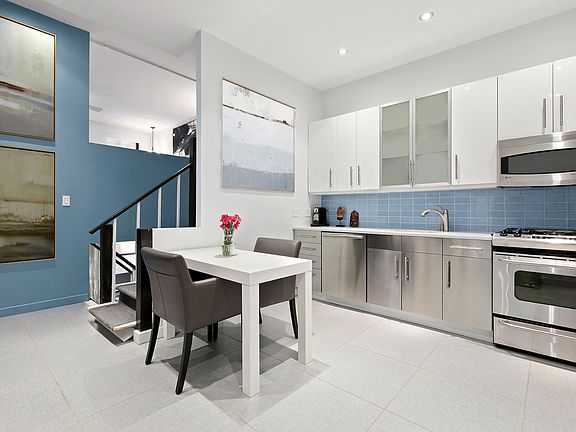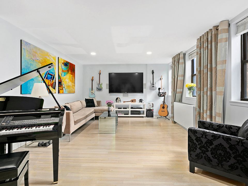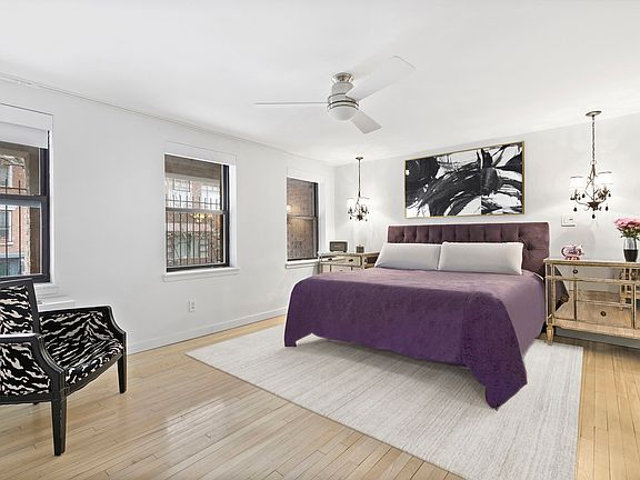 Unbeatable space, storage and Downtown chic are yours in this outstanding one-bedroom plus recreation room, two-bathroom co-op in the heart of the West Village. With great closets and tons of flexible living space across four levels and approximately more than 1,300 sq. ft., this beautiful home caters to your exact needs with effortless ease. Arrive in the gorgeous eat-in kitchen filled with lacquer and stainless steel cabinetry, great appliances and plenty of room for a large dining table. The blue accent wall and matching tile backsplash add a designer touch, while the large pantry, closet, and in-unit washer-dryer add total convenience. Head up one level to find the oversized bedroom featuring a row of south-facing windows, a massive walk-in-closet, and an en suite bathroom. Downstairs from the kitchen is a sprawling living room with more southern light, gleaming hardwood floors and high ceilings dotted with recessed lighting. On the bottom floor, an extra-large rec room can easily be converted into a bedroom (see virtually staged photo) with a second full bathroom and includes a storage space of over 250 sq. ft. 200 West Houston is a pet-friendly boutique co-op offering video intercom entry, an updated lobby, laundry room, and a very lenient sublet policy. Embrace quintessential Downtown living in this unbeatable location at the intersection of the West Village, Hudson Square and SoHo. The storied Film Forum is across the street, Washington Square Park is nearby, and 500-acre Hudson River Park provides miles of waterfront outdoor space and recreation. Transit options from this accessible neighborhood are abundant with 1, A/C/E, B/D/F/M and PATH trains all nearby. 2 New electric A/C ceiling units; 8 new soundproof windows; new privacy sliding walls in main bedroom and basement room; remodeled stairs, new lighting fixtures, new kitchen counter installed with quarts countertop with seating for four. New custom built in loft with queen adds comfortable and spacious sleeping for four in addition to main bedroom.