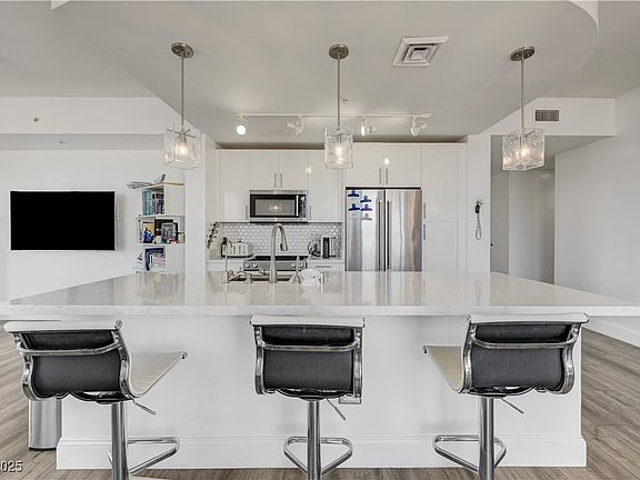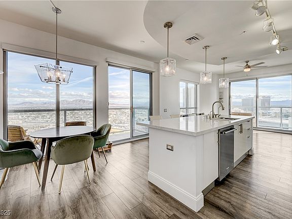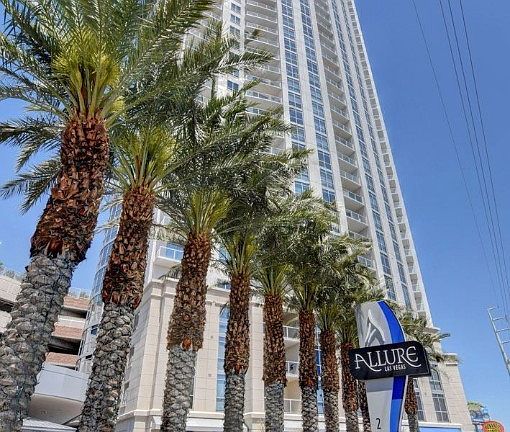 COMING SOON – CASH ONLY OPPORTUNITY! Allure Condominium luxury high-rise condo featuring 3 bedrooms and 2 bathrooms with spectacular city and mountain views from the 18th floor. Floor-to-ceiling windows in the primary bedroom and bath, sliding glass doors in the kitchen and great room, and abundant natural light throughout. Quartz countertops, white cabinetry, modern lighting, and walk-in closets in both bedrooms. Enjoy three balconies—located in the great room, primary bedroom, and a secondary bedroom. Includes two parking spaces and a storage unit. Resort-style amenities: pool, BBQ, fitness center, lounge room, business center, concierge, and 24-hour guard gate. Located just off the Strip with easy access to shopping, dining, and entertainment!