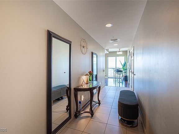 Luxury high-rise living at Allure Las Vegas! This 34th-floor, 2-bed, 2-bath condo showcases PANORAMIC VIEWS of the Strip & surrounding mountains from Floor-to-Ceiling windows & TWO private balconies. The chef’s kitchen includes granite counters, stone backsplash, rich wood cabinetry, stainless steel appliances, & a breakfast bar perfect for entertaining. Both the primary and junior suites boast Strip views; the spa-like primary bath features a soaking tub and walk-in shower. Recent upgrades include newer fridge, washer, and dryer (2 yrs old), updated light fixtures, ceiling fans, and all tile & luxury vinyl flooring—NO Carpet for easy maintenance. Can be sold fully furnished! Residents enjoy resort-style pool/spa, fitness center, BBQ area, pet park, 24-hour security, valet, and concierge. Ideally located near premier dining, shopping, entertainment, and the excitement of the Strip, this condo blends sophistication, convenience, & the best of Las Vegas living.