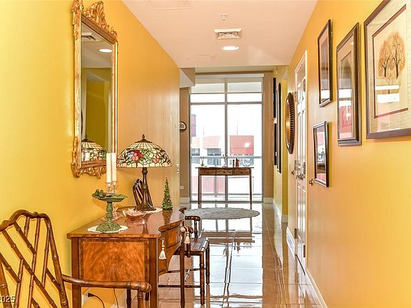 Location/Location..This Gorgeous 2/2 condo is perfectly located on the amenity floor so you just walk out the door to the pool and gym. It also offers personal luxury & strikingly lovely decor with over 100k of upgrades. Meticulously maintained, open entertaining area, porcelain floors, floor-2-ceiling windows show N,W,S views of Strip and mountains & have sun shades, upgraded SS appl & granite counters, custom bath showers+tub, 2balconies w/ stone+unique feature of patio off Master Suite,ceiling fans,prof designed walk-in closets+pantry,mounted TV's. New washer and dryer. Amazing larger parking spot that is private with no cars next to you. Condo also has extra storage room that is climate controlled and locked on the second floor MUST SEE!