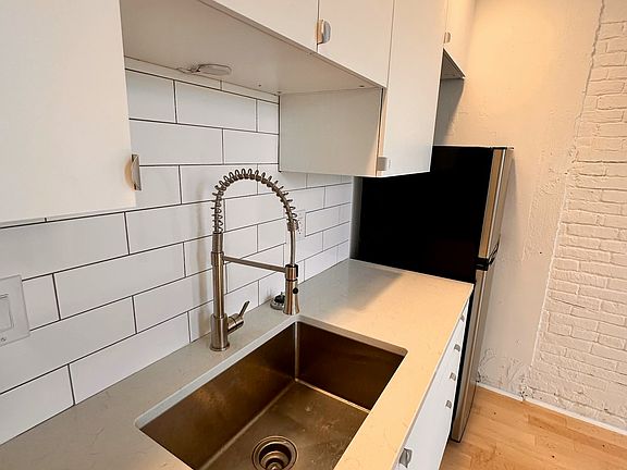 Exposed brickQuartz countertopIn-unit washer and dryerBeautiful victorian windowsMaple hardwood floorsPorcelain bathroomSteel appliances