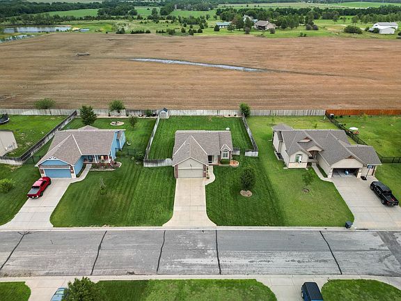 Introducing a great opportunity to own a fantastic home on a cul de sac in the growing Goddard community with new amenities and developments continuously enhancing the area's appeal. Home offers 4 bedrooms and 3 bathrooms, providing ample space for comfortable living. As you step inside, you'll be greeted by the warmth of wood laminate flooring that stretches throughout the main level, adding a touch of elegance to the open floor plan. The living area seamlessly flows into the kitchen and dining area. The kitchen features an island and comes equipped with all appliances. Primary suite offers views of the backyard with a private feel (farmland behind you) and the primary bath has soaker tub, separate shower, tile floors and double sinks. Remainder of the main level is a bedroom, full bath and laundry. One of the standout features of this home is the full finished basement, providing additional living and recreational space for you and your loved ones with two additional bedrooms (one with wood laminate flooring) full bath with tile shower and built ins in the family room. This basement has all the charm and space for a cozy movie or game night. Enjoy you privacy fenced yard and the perfect place to catch the sunrise and sunset is on this covered deck. Lawn is vibrant and lush and has a sprinkler system. Home is clean and well maintained. Schedule a showing today!