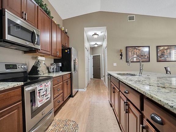 ***PRICE REDUCATION***--Welcome to your move in ready Deland home. This coroner unit has double panel windows through out the home, tinted windows (#3) on the south side, upgraded garage flooring with extra led lighting, overhead storage racks, along with a work bench and wall cabinets, water filtration system, new light fixtures, fans, and faucets in kitchen and master bathroom. Planation shutters on ALL window, added extra paver walkway to enclosed back patio area, roof over entire barbeque area, titled porch with roll up shading, and retractable front door screen with front door electronic lock and door handle. Come and tour your home today!