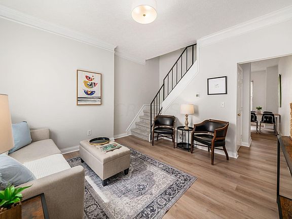 Renovated condo in fantastic Italian Village location near High St and 4th St amenities. Freshly painted throughout. New LVT flooring and light fixtures on first floor. Large, updated kitchen with eating space and brand new quartz counters, penny tile back splash, and stainless-steel appliances. New carpet upstairs, recently renovated bathroom, spacious main bedroom, and 2nd bedroom with new IKEA wardrobe. Private courtyard in back and plenty of storage in full basement. Convenient permit parking. New AC in 2022! Roof was replaced in 2019. Move right in!