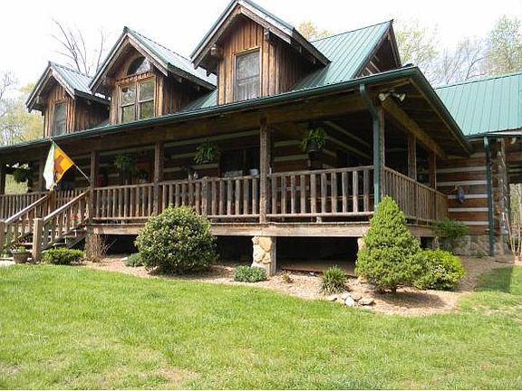 True Log Cabin with remarkable craftsmanship all on a peaceful setting can be yours. The Hand Hewn logs have been detailed out making this a one-of-a-kind beauty. The home sits on 2.41 acres off a quite country road. This custom home offers three bedroom two bath, wonderfully constructed fire place, main floor master, front and back covered porches, laundry room, kitchen with solid surface counters and bar. Most doors throughout the home were also hand crafted and beautiful hardwood floors. Wood stove in basement for supplemental heating. Gas logs in fireplace makes for a cozy and inviting living room. The wooded surroundings makes this property secluded and private.