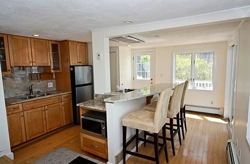 Chic condo with panoramic views of Nahant Bay, across to Swampscott and beyond! Updated, and renovated to the studs in 2009. Features include kitchen with maple cabinets, granite counters, stainless appliances, along with a spacious countertop dining area, in-unit stackable washer and dryer, plenty of closets, and a 9' x 20' covered composite deck from which to further enjoy fireworks, sailboats, and kite-surfers. Just one block up from Long Beach, a coffee shop, and a restaurant. This beautiful spot will make you feel as though you are on vacation everyday.