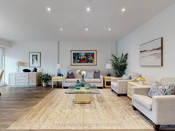 Welcome to this rare and expansive 1,775 sq. ft. 3-bedroom, 2.5-bath residence, combining elegance, practicality, and comfort in one of the Beachs most desirable addresses. Flooded with natural light, the living, dining, and kitchen areas are framed by wall-to-wall windows, creating a bright and airy atmosphere. The well-planned, unique layout includes a primary suite with a walk-in closet, spa-inspired ensuite, and a double-sided fireplace shared with the living room. The second bedroom features a generous closet, while the versatile third bedroom/library includes a Murphy bed and walk-in closet, making it ideal for guests or a home office.The large gourmet eat-in kitchen is equipped with a Gaggenau cooktop (grill, ceramic, and gas wok), counter-depth built-in fridge, stacked oven and microwave, a buffet with glass doors, a built-in desk, and abundant storage. A full-sized laundry room with washer, dryer, and sink adds everyday convenience, while durable PVC flooring runs seamlessly throughout the home.For professionals who welcome clients at home, the residence offers a private office suite complete with guest bathroom and small waiting area. Pocket doors provide a discreet separation from the main living quarters, ensuring comfort and privacy while maintaining a refined flow.Additional features include two parking spaces and an oversized double locker on P1. Perfectly located just steps from the lake, boardwalk, shops, and restaurants, this home delivers both luxury and lifestyle.