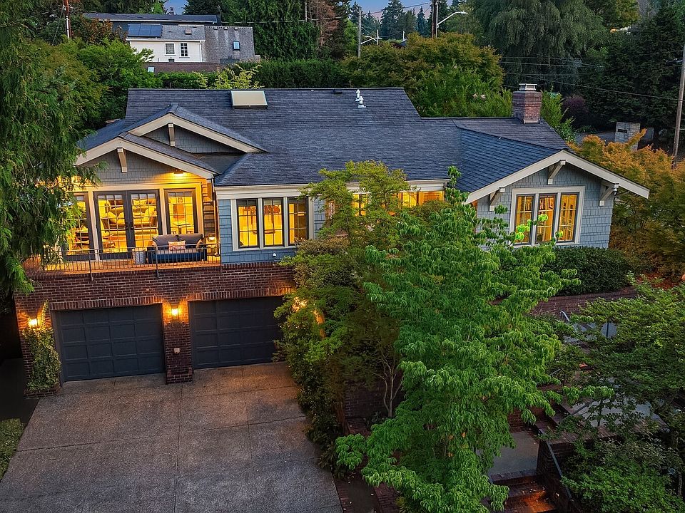Nestled on a quiet corner lot in Madison Park, this elegant Craftsman-style home blends timeless charm with modern comfort. Step through the foyer into a spacious living room, where French doors open to a balcony. The sunlit kitchen features a chef’s island, skylight & breakfast nook. Dine indoors or gather in the exquisite garden w/a calming water feature & fireplace. Formal dining opens to a den w/seamless outdoor flow. A private office w/Juliet balcony offers quiet focus. 2 main-level bedrooms incl. a peaceful primary suite that overlooks the yard. Lower 3rd bedroom suite, media room & flexible studio space w/private entrance. Sonos sound system throughout. Refined retreat in one of Seattle’s most scenic & walkable neighborhoods.