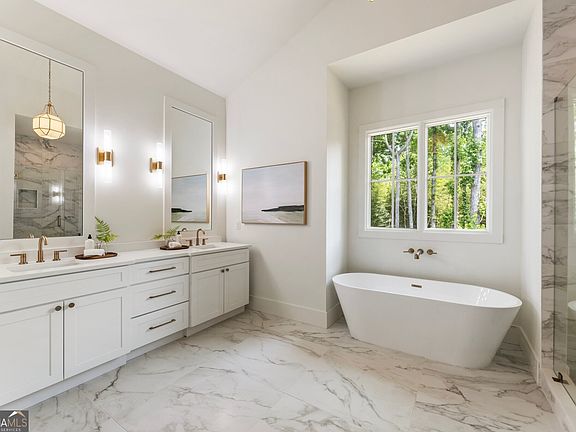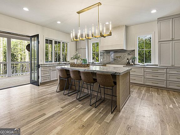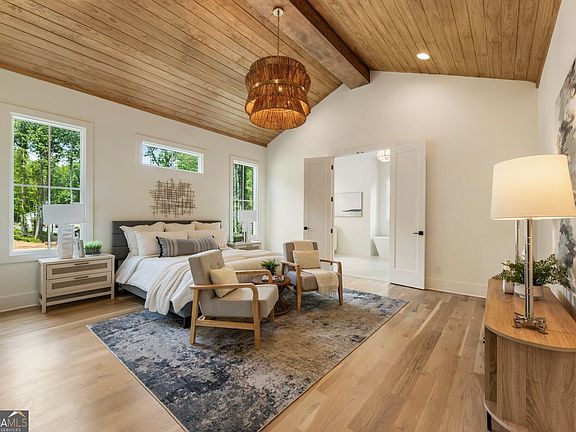 Exceptional opportunity in Milton to be on acreage in new construction all located within this gated enclave of three custom homes. Priced below appraisal and an amazing value for the new owner to enjoy stunning new construction with a primary bedroom and second guest room on the main level with an unfinished terrace level ready for you to customize. This estate home was built by Paramount builders and offers privacy and a thoughtful floor plan all located within picturesque Milton, Georgia. Upon entering, take in the soaring two story foyer that welcomes you with abundant natural light and opens into the spacious main level. The chef's kitchen features an oversized island, custom cabinetry that extends to the ceiling, a quartz slab backsplash, and a statement range with cast stone hood framed by large picture windows. Integrated Thermador appliances include a built-in refrigerator and full size freezer with a 48 inch gas range with dual ovens, dishwasher, and microwave drawer. A spacious scullery with wet bar and additional cabinetry bridges the kitchen to the formal dining room, providing functionality and elegance for celebratory parties and holiday dinners. The kitchen flows into the living room where a cast stone fireplace with mantel creates a warm focal point. Glass sliding doors lead to the covered outdoor living space with grilling station, already wired for a surround sound system with additional speakers on the porch. The main level primary suite is a private retreat with vaulted ceilings and exposed beams, a dual sided walk-in closet, and a spa-like bath with double vanities, frameless shower, and a free-standing soaking tub that overlooks the private backyard. A secondary bedroom with full bath on the main level offers flexibility for guests, a home office, or library. Throughout the home, details such as red oak hardwood flooring, cove crown molding, wainscoting, and custom feature walls reflect the craftsmanship of Paramount Builders. Upstairs, three spacious bedrooms each include an ensuite bath and walk-in closet. A bonus loft and a well-appointed laundry room add convenience and versatility. The detached three car garage, connected by a breezeway, opens into a functional mudroom with custom cubbies, coat hooks, and a drop zone. The expansive terrace level offers endless opportunities for customization. The acreage is ideal for creating an outdoor oasis with a pool or for keeping horses, ponies, or other livestock. Located just minutes from GA 400, this property offers year-round views and an idyllic private setting close to dining, shopping, Bell Memorial Park, and award-winning Milton schools. Nearby White Columns and The Manor provide access to memberships for golf, tennis, pool, fitness, dining, and a robust calendar of events. Experience the craftsmanship and quality of this Milton residence and discover the lifestyle it affords. Schedule a private tour today.