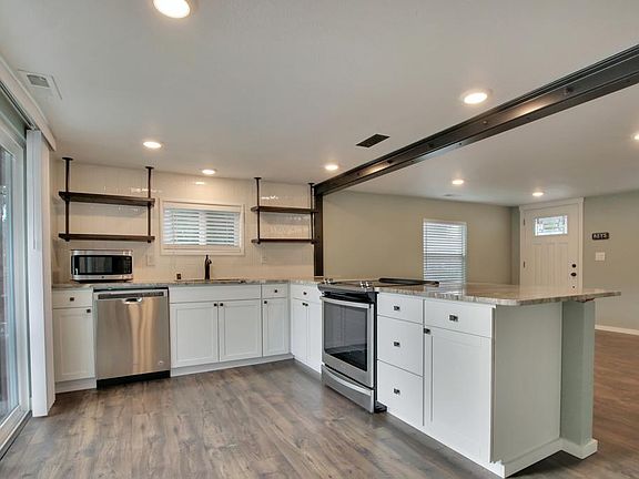 Absolutely adorable 3-bedroom, 1-bath home in a great location! Fully restored in 2017 with a beautiful blend of old-world charm and modern touches. Step into an inviting, updated kitchen with stainless steel appliances, quartz countertops, a full tile backsplash, custom open shelving, and a decorative industrial beam that adds a touch of character that you won't find elsewhere . Laminate flooring, a tiled bathroom floor, a custom tile shower, blinds, and an included washer & dryer make everyday living comfortable and convenient.