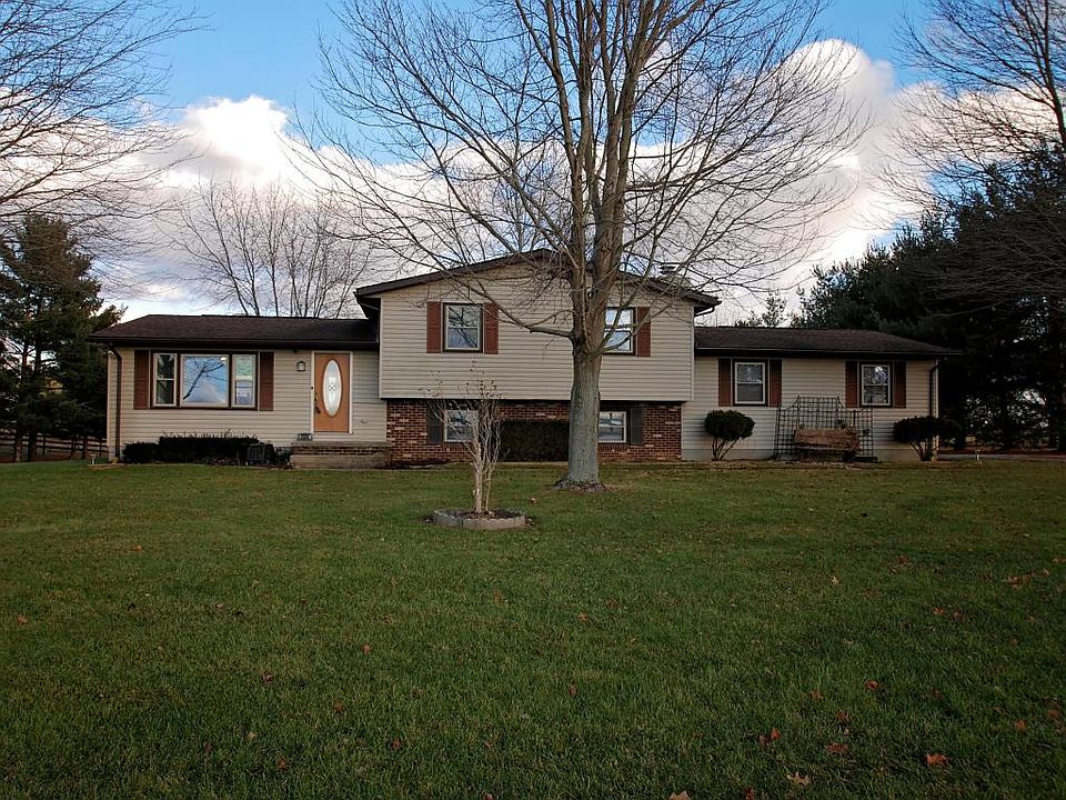 Wonderful views out the family room window of rolling land and huge creek. This home features three bedrooms on the top level with two full baths. A Big kitchen with breakfast bar,dining room and family room.Third level has another huge entertaining family room with wood burning fireplace,laundry area and the third full bath. Lowest level offers sprawling inlaw suite. with another bedroom, kitchen,closet and utility room. Outside you will find the EverNew deck with lifetime warranty.Swimming pool 16 x 32 swimming area with vermiculite bottom which over looks Fenced pastures and Walters built 30 x 56 barn with electric and water,skylights. Updates include Alarmco windows in 2000,one year old Furnace &Ac,2002 roof,2002 siding,2008 doors,2009 carpet and 2009 wood floor