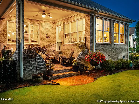 This exceptional residence showcases a custom build by Len Tozer. A striking limestone focus wall frames the sleek horizontal gas fireplace, creating a dramatic centerpiece in the living area. Etched glass pocket doors connect the sunroom and living room, offering both style and versatility, while electronic blinds and plantation shutters add a touch of sophistication. The gourmet kitchen is a chef's dream, featuring a waterfall quartzite island, Thermador appliances, wine cooler, warming oven, and abundant custom cabinetry. Eight-foot interior doors enhance the home's sense of scale and craftsmanship, while a four-zone thermostat ensures personalized comfort in every space. The oversized primary suite provides a private retreat, complete with a spa-inspired bath showcasing a unique hanging mirror design. Outdoor living is equally impressive with beautifully landscaped grounds, flowering trees, rose gardens, and lush zoysia grass. Every detail has been thoughtfully designed for beauty, function, and comfort, making this home truly one of a kind.