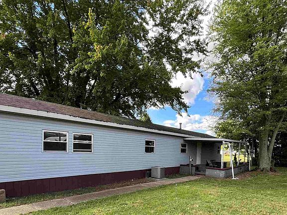 Large 1 acre yard provides a nice setting for this vinyl-sided mobile home. The 24' x 28' detached garage has plenty of space for two vehicles, plus extras. This home provides 2 bedrooms and 1 bath with a living room that has a bay window. The large master bedroom includes built in dresser drawers. Access the bathroom through either the hallway or master. Laundry room is attached to the bathroom. A covered patio in the back offers a comfortable place to relax and enjoy your new home! Seller to allow up to $2,500.00 in flooring allowance.