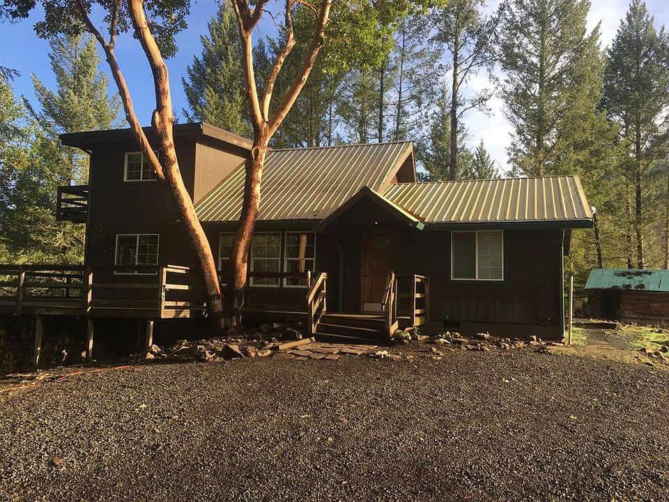 Private country home nestled in a tree setting. Rustic 3 bdrm and 2.5 bath home with large deck, two wells plus holding tank. The main well is at 7 gpm - the other one at 3.5 gpm. This home sits back off of the road and is very quiet and tranquil. Agricultural greenhouses and storage facilities.