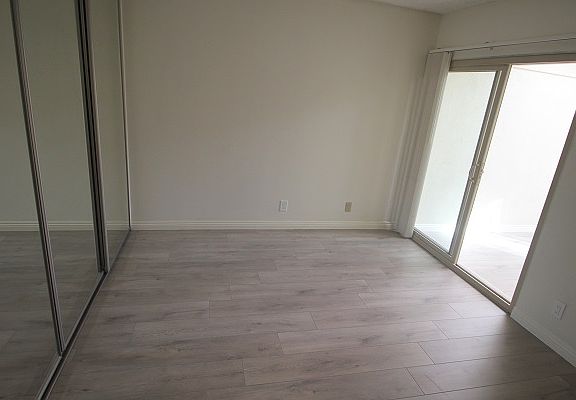Beautiful 2 bedroom 1 bath townhouse with a den and skylights which received a major upgrade. It is located in an excellent area of North Redondo Beach close to Manhattan Beach. Super sharp near new hardwood floors was installed in the living room and in the bedrooms, bonus room, staircase and hall. The kitchen has a long granite breakfast bar. Cabinets were professionally refinished. Unit has double paned vinyl windows for additional temperature and noise efficiency. There is a large private patio. The den is a small room which can be used as an office. Rent would be $50 additional with a cat and $95 additional with a dog. The front of the property has 2 gorgeous huge mosaic tile pictures of a Japanese Zen scene.